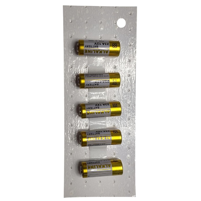 Bateria A23 12v Marca ALKALINE p/Controles de Portão..ESPECIFICAÇÕES TÉCNICAS,..Capacidade (mAh): 38 mAh..Modelo: 23A / A23 / 23AE..(também conhecida como: LRV08 / L1028 / RVO8 / 23A / MS21 /..MN21 / E23a / K23A / V23GA / 8LR932 / 8LR23 / VR22 / 8F10R)..Marca disponível: ALKALINE..Indicada para: Controles Remoto de carro, alarmes, portões,..Lanternas, brinquedos etc.....Vida Útil: Descartável..Medidas Aproximadas do Produto:..Comprimento 0,9cm x Altura: 2,8cm x Largura: 0,9 cm..Peso:60,00 Gramas..GARANTIA: 3 Meses (Não abrange mal-uso ou gasto de bateria)..Cartela com 5 unidades de baterias Forma:Cilíndrica Tamanho da pilha:AA É recarregável:Sim Unidades por kit:1 Formato de venda:Kit Fonte do produto:Alkaline Composição:NiCd Voltagem nominal:12v Unidades por pacote:5 Voltagem:12v marca:Alkaline
