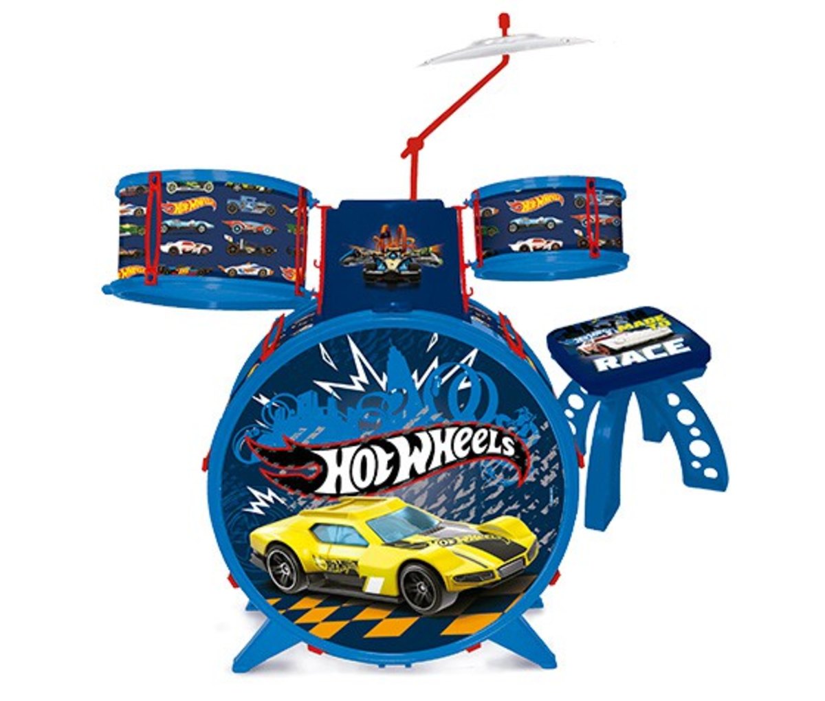 Bateria Infantil Hot Wheels Radical - STARTOs meninos poderão soltar a imaginação e toda a sua musicalidade na super radical Bateria Hot Wheels.A Bateria Infantil Hot Wheels é igualzinha a uma bateria de verdade e é muito fácil de montar.Detalhes: Certificado pelos Órgãos Autorizados - OCPCaracterísticas: Conteudo da Embalagem : 2 tons de diferentes tamanhos, 1 bumbo com pedal, 1 prato, 1 banquinho, 2 baquetas e 1 Manual de intruções. .Composição/Material: Plástico .Não recomendavel para crianças menores de 3 anos de idade por conter partes pequenas que podem ser engolidas..Aviso: As cores podem variar entre as imagens mostradas acima e o produto. Imagens meramente ilustrativas..Garantia: 3 meses de garantia contra defeito de fabricação.