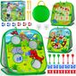- 【acessórios Ricos E Fáceis De Transportar】: O Pacote Contém Uma Placa Dobrável Para Crianças (3 Superfícies Funcionais Diferentes), 10 Pufes, 6 Bolas Adesivas, 6 Dardos, 4 Pontas De Solo, 2 Ganchos Pegajosos E 1 Bolsa De Armazenamento Portátil Para As Mãos. A Placa De Buraco De Milho Pode Ser Pendurada Na Parede Com Um Gancho Para Jogos De Dardos.