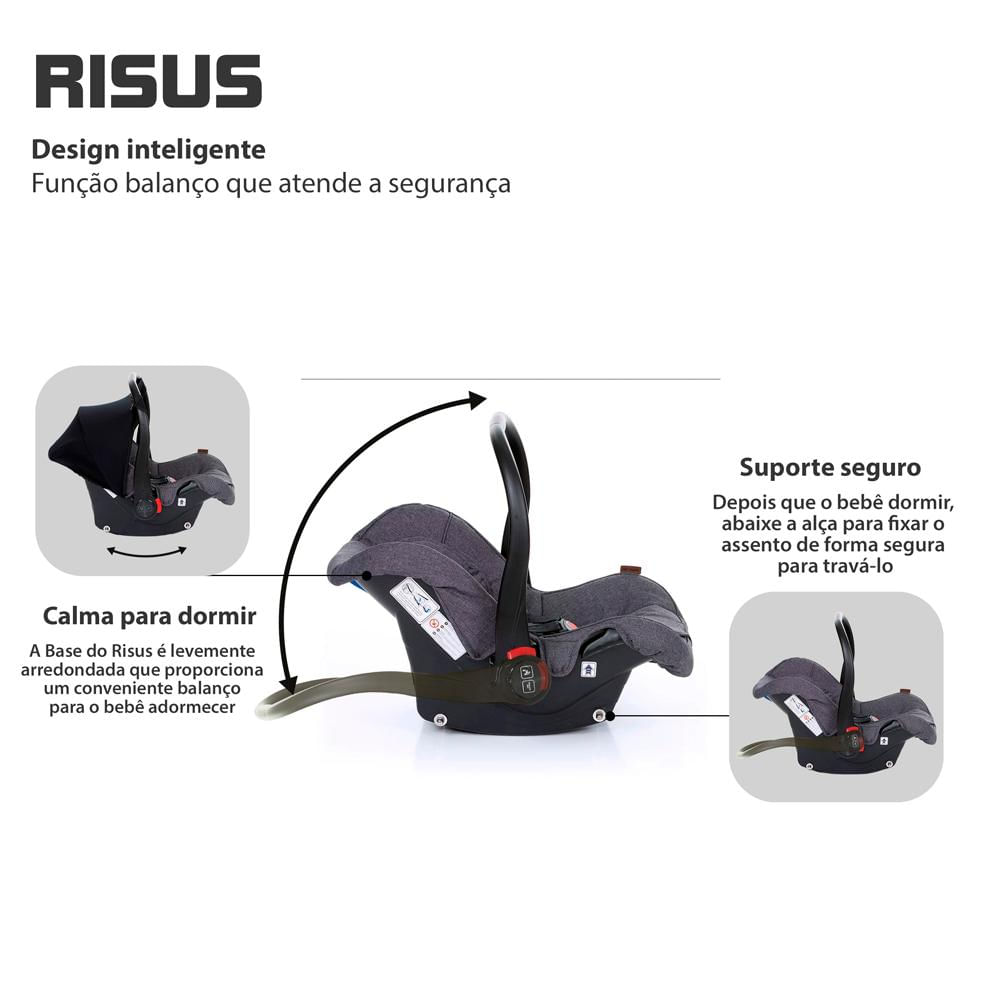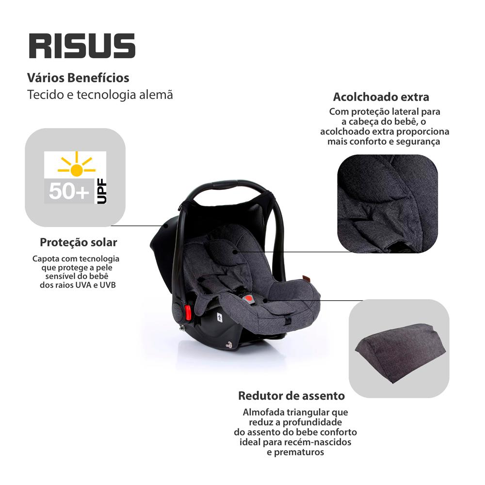 Descrição Do Risus: Bebê Conforto Com Capota Solar Removível E Tecido Tecnológico Desenvolvido Na Austrália Com Proteção Solar. Totalmente Aprovado Pelas Normas Brasileiras E Com Selo Do Inmetro, Além Da Aprovação Pelas Normas Europeias De Segurança Ece 44/04. Indicado Para Crianças De 0 A 13kg Pode Ser Acoplado Nos Carrinhos 3tec, Salsa 3, Salsa 4, Condor 4, Mint, Avito, Como4 E Zoom Com A Utilização De Adaptadores (vendido Separadamente) Base Com Isofix Vendida Separadamente. Medidas Do Risus: Altura: 66cm Largura: 42cm Comprimento: 24cm.