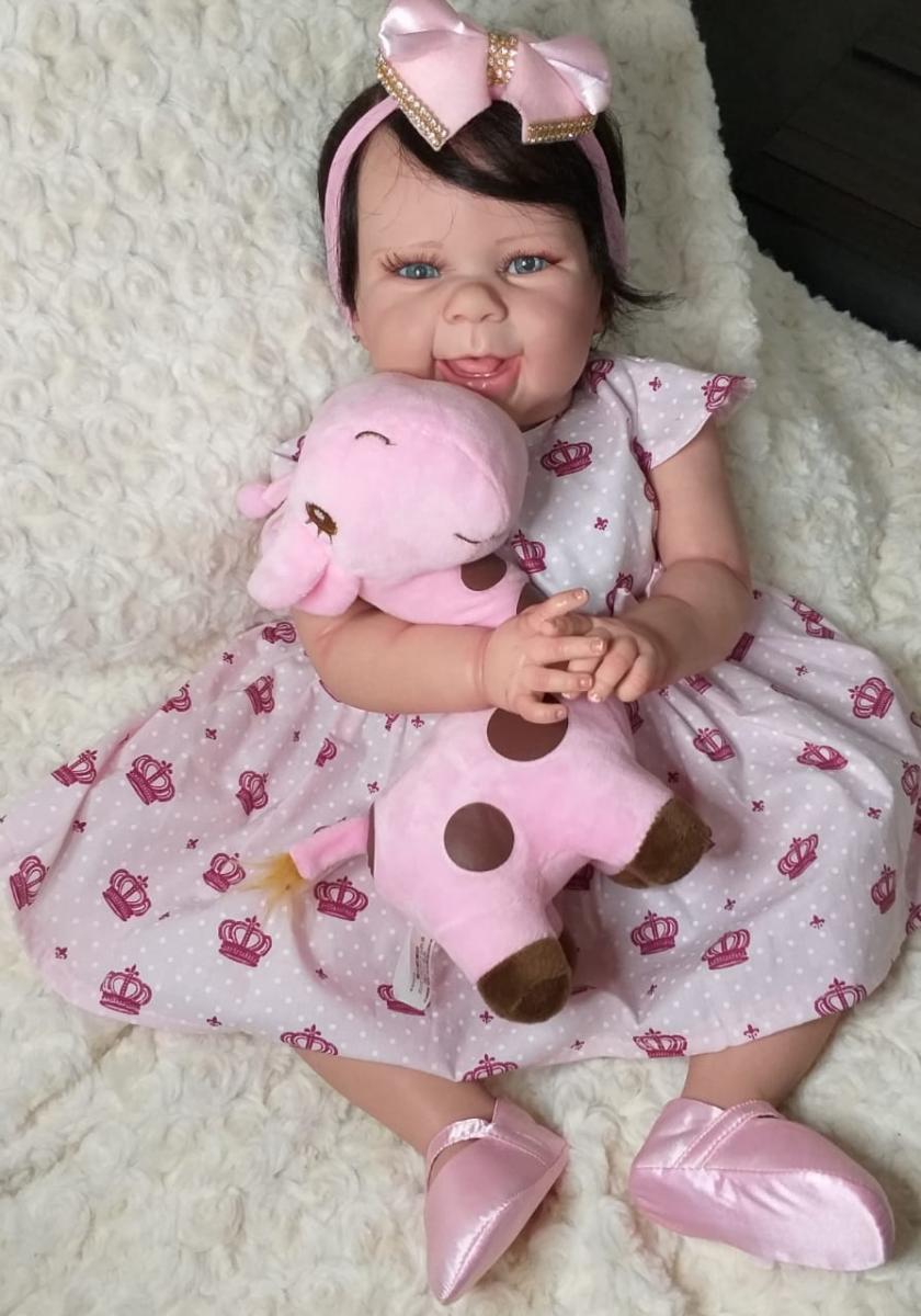 BONECA REBORN REALISTA PRONTA ENTREGA Corpo em Vinil Silicone totalmente articulado e de excelente qualidade, Ela pode sentar, deitar, levantar os bracinhos e fazer tudo o que a sua imaginação mandar, menos tomar banho hein... Acompanha enxoval igual ao da foto. Toda a roupinha, chupetas e acessórios são de muito bom gosto e de primeira qualidade. Cílios de verdade, Olhos azuis ( você pode escolher verde ou castanho também) Membros inteiros de vinil siliconado. Cabelo: implantado fio a fio, pode molhar, Peso: 2 kg aproximado Pedida:55 cm Pintura: aplicada toda a técnica reborn, manchinhas arroxeadas, manchinhas de frio, veinhas aparentes, unhas francesinha, marquinha de vacina e marquinha do teste do pezinho O QUE ACOMPANHA A BONECA 1 Vestidinho (pode ser diferente a da foto porem da mesma, qualidade) 1 Sapatinho 1 Faixa de cabelo 1 Escova 1 Pente 1 Par de brincos 2 Fraldas 1 Chupeta magnética 1 Mamadeira com leite falso 1 Certidão de nascimento 1 Teste do pezinho 1 Manual de cuidados 1 Caixa Tire todas as suas dúvidas antes da compra. Estou sempre à disposição para atendê-los.