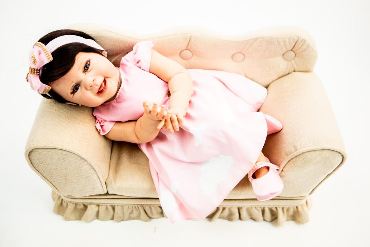 BONECA REBORN REALISTA PRONTA ENTREGA Corpo : tecido macio (SUEDE) Olhos azuis ( você pode escolher verde ou castanho também) Cabelo :implantado fio a fio, pode molhar, cabelo macio de fibra japonesa Peso: 2 kg aproximado Membros silicone Medida:55 cm Pintura: aplicada toda a técnica reborn, manchinhas arroxeadas, manchinhas de frio, veinhas aparentes, unhas francesinha, marquinha de vacina e marquinha do teste do pezinho. O QUE ACOMPANHA A BONECA 1 Vestidinho (pode ser diferente a da foto porem da mesma, qualidade) 1 Sapatinho 1 Faixa de cabelo 1 Escova 1 Pente 1 Par de brincos 2 Fraldas 1 Chupeta magnética 1 Mamadeira com leite falso 1 Certidão de nascimento 1 Teste do pezinho 1 Manual de cuidados 1 Caixa Tire todas as suas dúvidas antes da compra. Estou sempre à disposição para atendê-los.