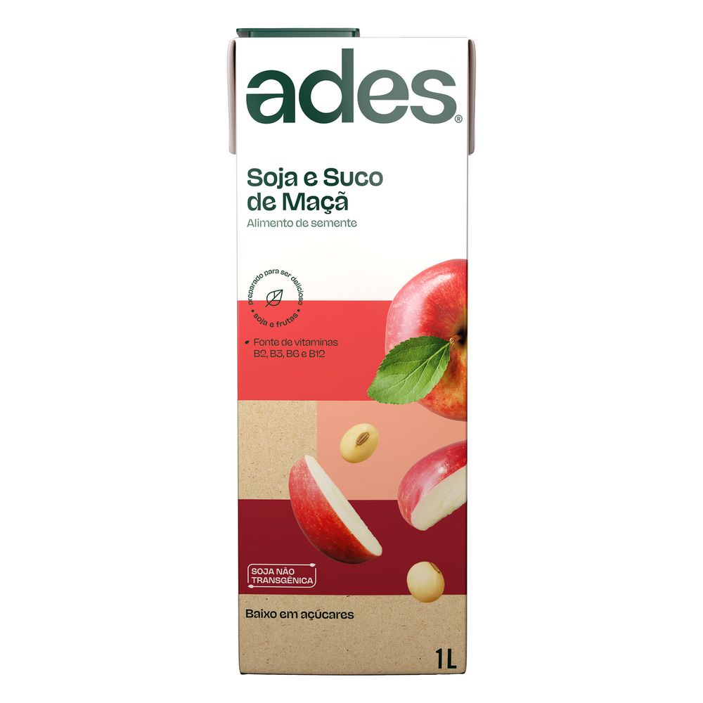 A Bebida à Base de Soja Sabor Maçã Ades é cuidadosamente elaborada com água e grãos de soja, combinados com suco de maçã concentrado para um sabor autêntico. Sua formulação inclui um complexo de vitaminas (C, B2, B3, B6, B12, Ácido Fólico) e Zinco, tornando-a uma bebida de soja com vitaminas que agrega valor nutricional. É uma alternativa saudável sabor maçã, adoçada com açúcar e sucralose, e estabilizada com pectina e goma guar, garantindo uma textura agradável. É a opção perfeita para quem busca uma bebida saborosa e funcional.