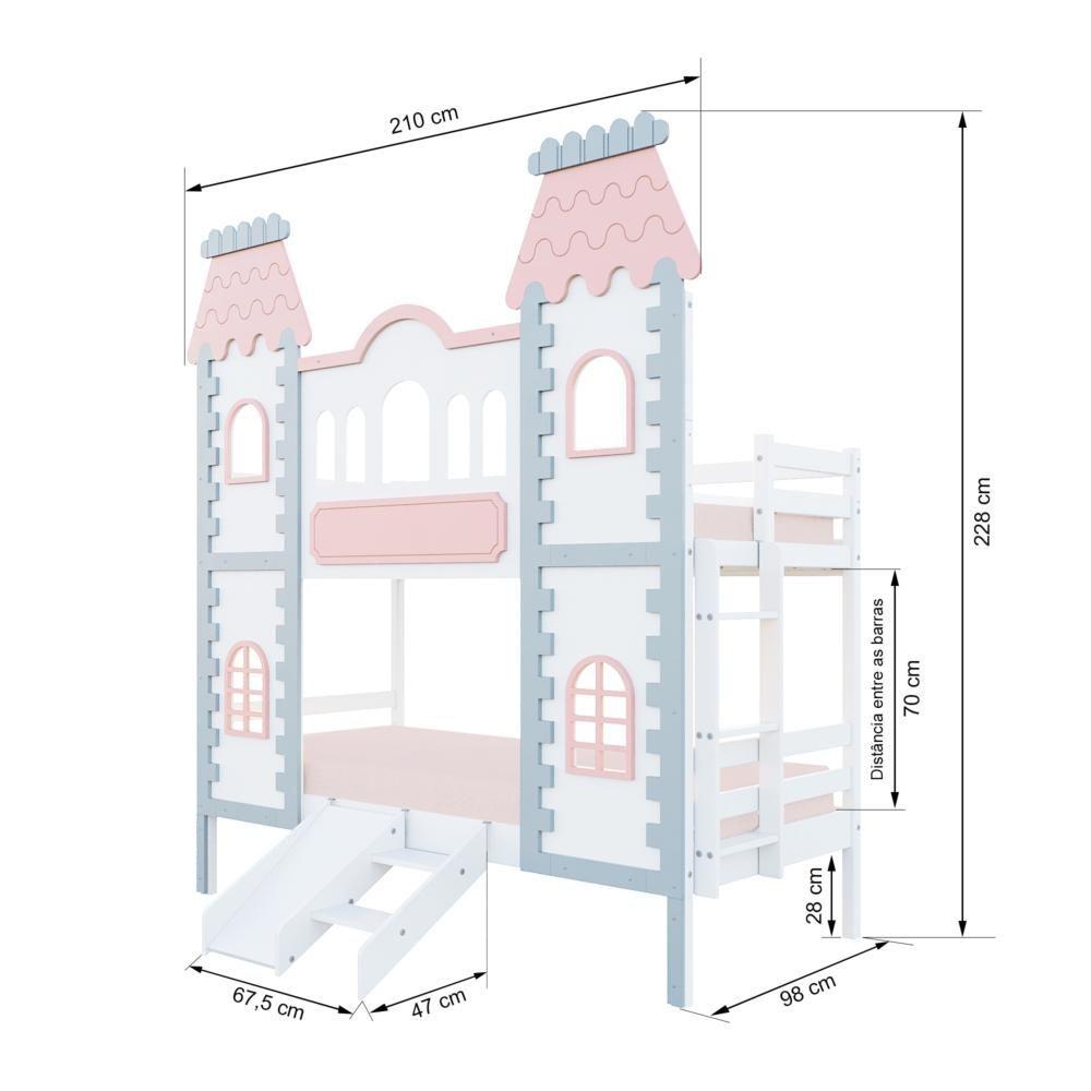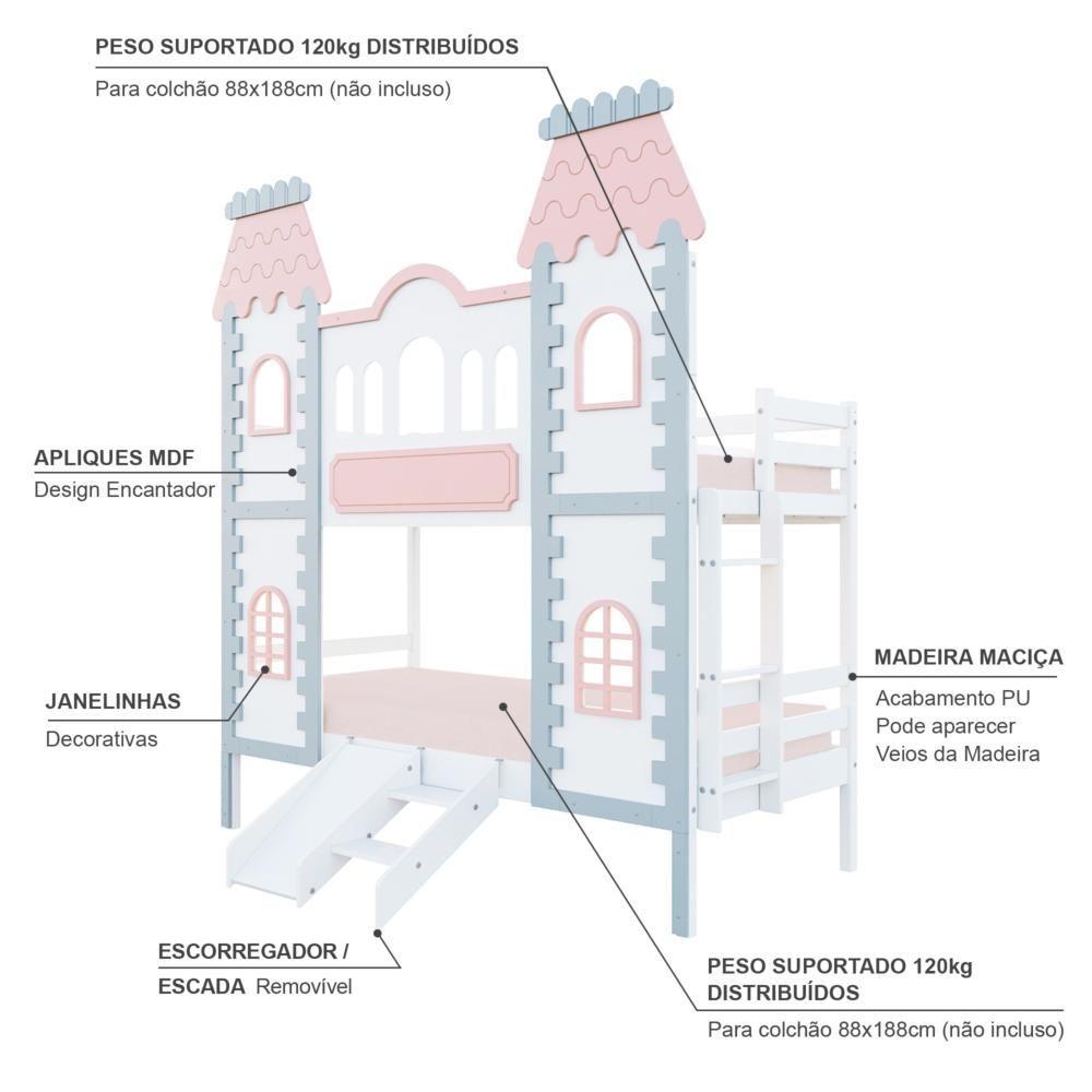 Beliche Castelo Encantado Com Kit Escada/escorregador - Madeira Maciça Branco/cinza/rosa | Housindetalhesacabamento: Branco/cinza/rosa Pu (pode Mostrar Veios Da Madeira)estrutura: Madeira Maciça De Pinus De Reflorestamentomedidas Dos Colchões Da Cama (cm X Cm): 88x188 (não Incluso)peso Suportado Por Cama: 120 Kgdiferenciais: Castelo Com Fechamento Em Mdf, Kit Escada/escorregador, Montagem Reversível Da Escada ( Lado Direto / Lado Esquerdo)dimensões Do Beliche Montadoaltura (cm): 228largura (cm): 210profundidade (cm): 98informações Complementaresgarantia Do Fabricante: Prazo De 3 Meses Por Defeito De Fabricaçãonecessita De Montagem: Sim (acompanha Manual De Montagem)atenção: Não Realizamos Serviço De Montagem E Instalação. Imagens Meramente Ilustrativas. Cores E Tonalidades Podem Variar.embalagempeso (kg): 84quantidade De Volumes: 05material Principal: Madeira | Cor: Branco/cinza/rosa | Necessita Montagem: Sim | Acompanha Colchão: Não | Tipo De Cama: Beliche Solteiro Castelo