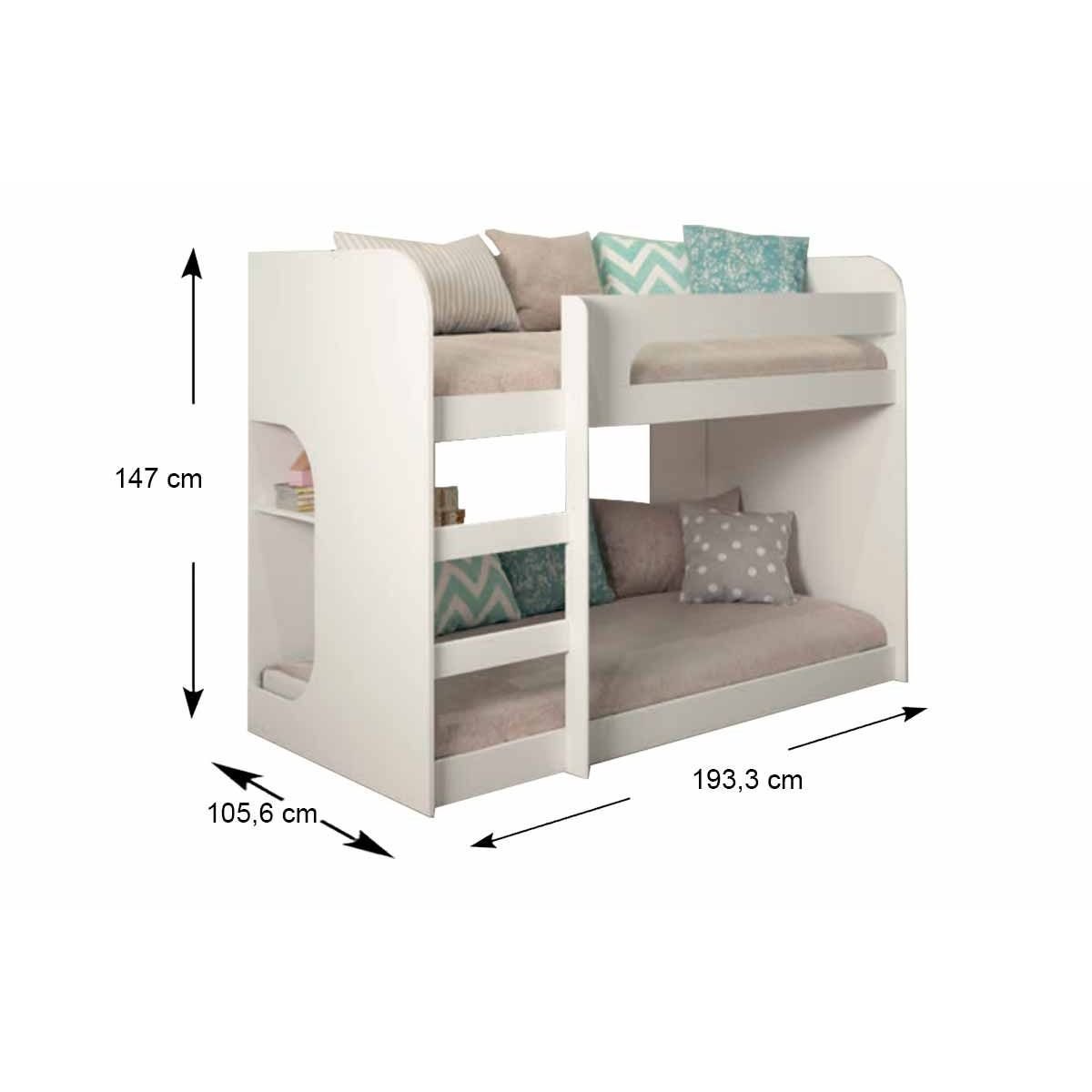 Beliche Cimol Ema - Branco Marca: CimolDimensões(Cm): Comprimento(Profundidade): 193,30 x Largura: 104,50 x Altura: 147,00 CARACTERÍSTICAS DE MÓVEIS Tipo de Estrutura do Móvel - 100% MDF Tipo de Pintura - UV (Ultravioleta) Tipo de Acabamento da Pintura - Fosca Tamanho do colchão para usar na cama - Solteiro 88 x 188 Quantidade de Prateleiras - 1 Prateleira Garantia - 3 Meses Não nos responsabilizamos pela montagem/instalação dos produtos. Todas as informações divulgadas são de responsabilidade exclusiva do fabricante/fornecedor. Imagens Meramente Ilustrativas. Verifique com os fabricantes do produto e de seus componentes eventuais limitações à utilização de todos os recursos e funcionalidades.
