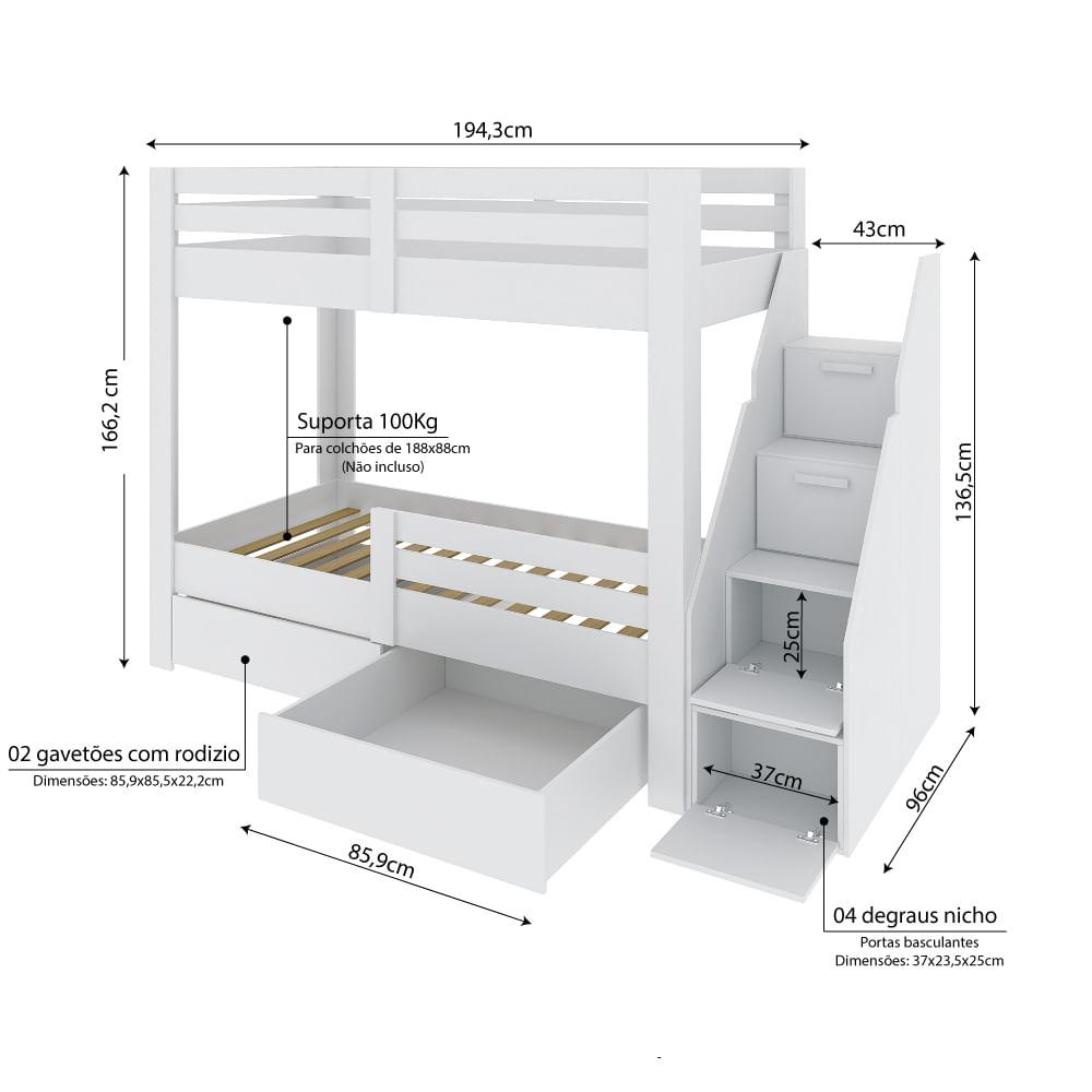Para tornar o quarto mais descontraído e extremamente funcional, a beliche Star Plus não pode deixar de ser sua escolha. Extremamente moderna, com design exclusivo, ideal para quarto pequeno. E ainda para completar esse luxo de quarto completíssimo, temos 4 portas e 2 gavetas com muito espaço para organizar os objetos e roupas. Conta também com uma grade de proteção na cama inferior, deixando a noite das crianças ainda mais seguras. O quarto será o canto favorito da casa!