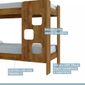 informações complementares: beliche equipada com cantoneira para celular, proteção lateral na cama superior. Sua escada é projetada na frente para facilitar o acesso à cama superior quando montada em ambiente apertado, pés e barras em mdf de 25mm dando total resistência e segurança