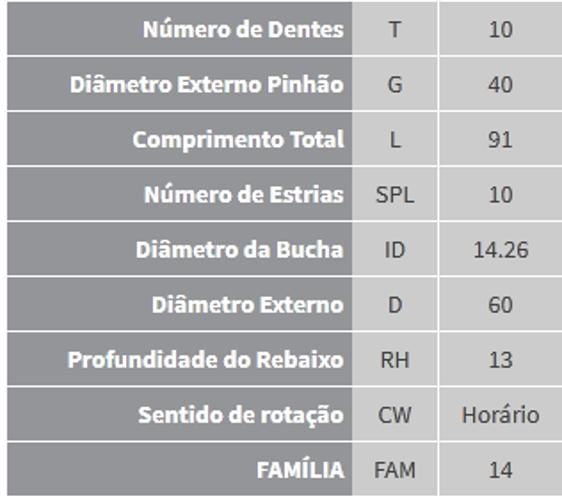 Diâmetro Externo Pinhão G 40