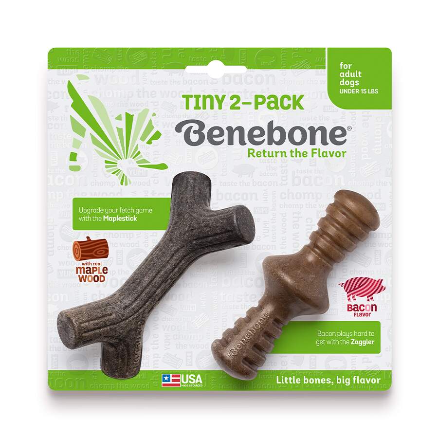 - Indicado para cães, - Brinquedo para roer, - Não há adição de palatabilizantes ou odores artificiais, - Ajuda a garantir e a cuidar da saúde dentaria e bucal do seu melhor amigo, - Brinquedo de busca durável, - Faz os cachorros abandonarem os galhos normais, - Disponível em embalagem com duas unidades (maplestick e zaggler), na versão Puppy(filhotes) e Tiny (adultos porte mini).