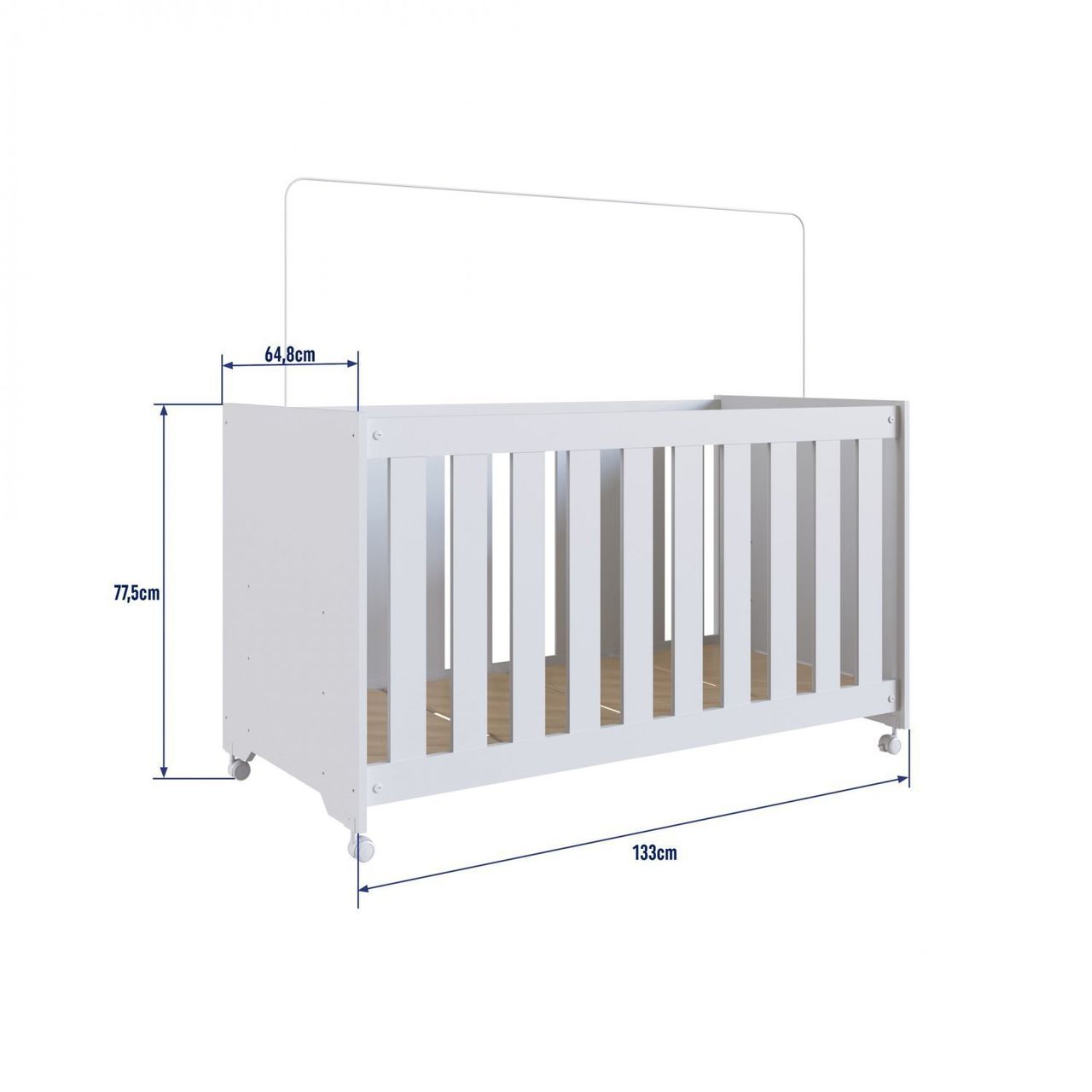 Berço 133x64,8cm Com Colchão E Rodízios Aconchego Completa Móveis Branco.