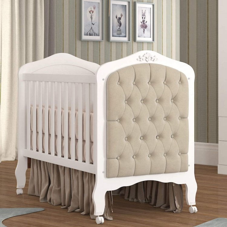 Este Berço Alegria é um produto que vai levar mais elegância e sofisticação para o quarto do seu bebê. Produzido com MDF, madeira resistente que garante estabilidade e segurança, ele é a melhor opção para deixar que seu anjinho descanse. O melhor de tudo é que ele acompanha o crescimento do seu filhote porque também vira um Berço Cama. O detalhe do Capitonê é uma maravilha a parte, você e quem mais dividir o ambiente do seu Bebê ficarão deslumbrados com a sofisticação do Berço Alegria