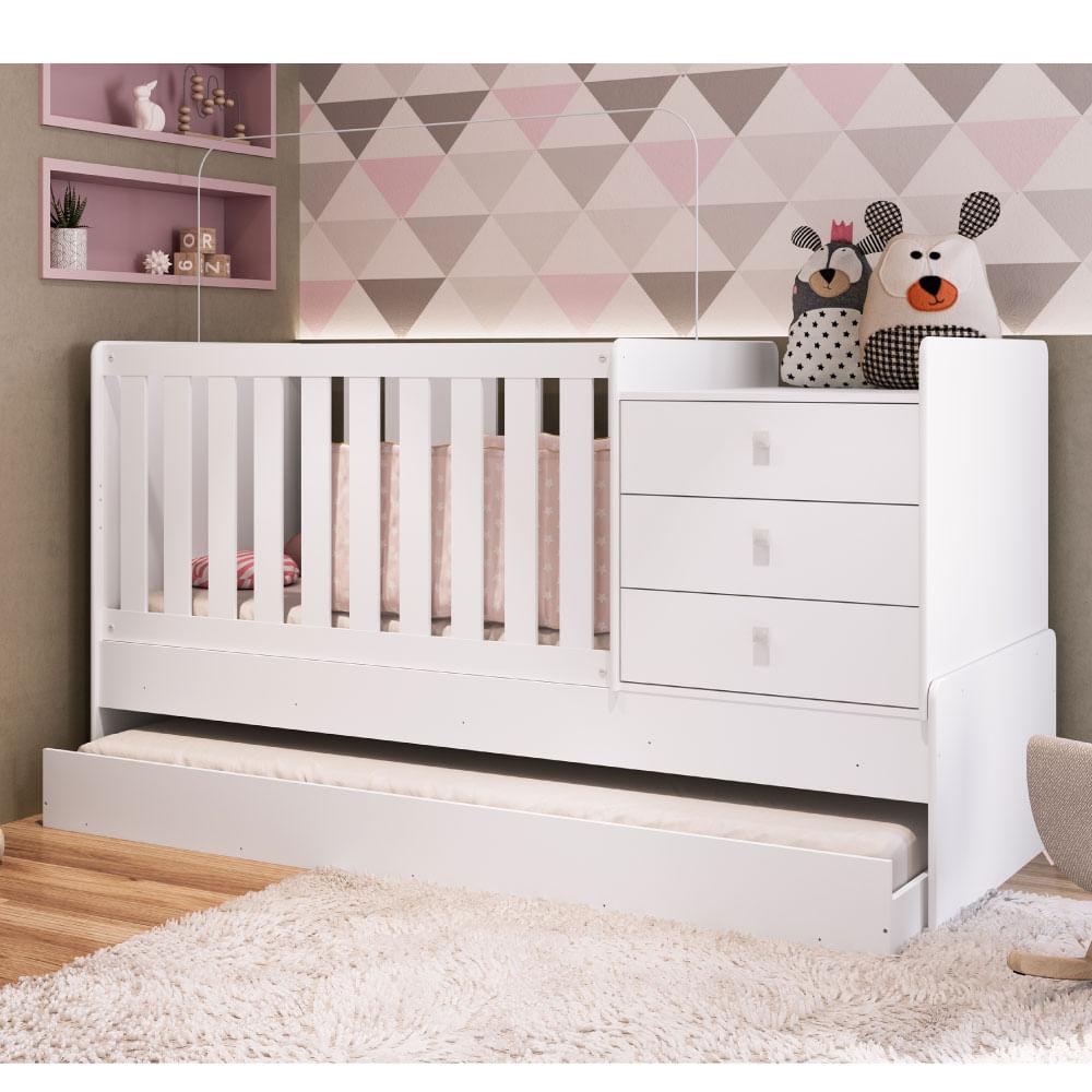 Sua beleza e funcionalidade são diferenciais deste produto, que oferece excelente custo-benefício sendo 3 peças em 1 móvel. A versatilidade está na montagem e uso ao longo das fases do bebê até a infância.