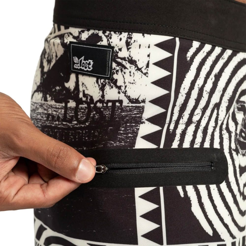 bermuda Água Lost Enterprises Tapioca estampa Especial Lost Enterprises,boardshorts Modelagem Surf,tecnologia Ergonomic Flex New,tecido Com Secagem Rápida,tecido Em Microfibra Com Elastano,cós Com Cadarço Ajustados,bolso Lateral Com Ziper Embutido,costura Com Linha Especial Para Evitar Assaduras,composição:93% Poliéster, 7% Elastano.