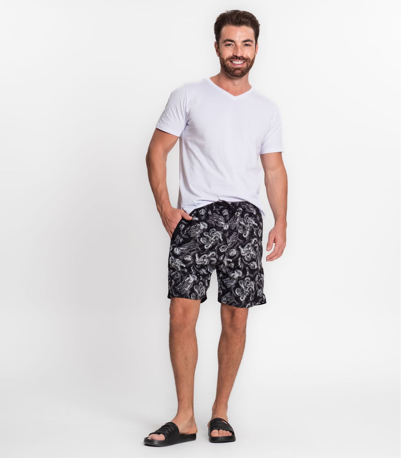 Bermuda Masculina Estampada Confeccionada Em Tecido Tactel ,conta Com Bolsos Laterais E Um Bolso Traseiro Para Acomodar Pequenos Objetos. Além Disso, Possui Cordão Na Cintura Para Garantir Um Ajuste Seguro, Proporcionando Todo Conforto E Estilo Durante Atividades Ao Ar Livre, Dias De Praia Ou Até Mesmo Na Piscina.
