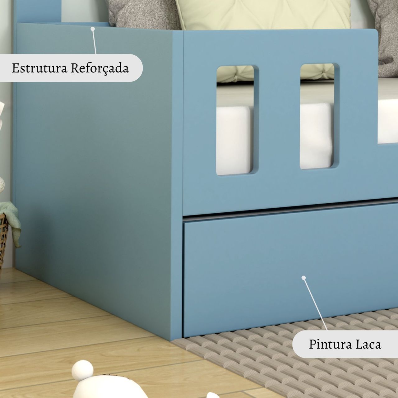 Bicama Infantil Com Estrado Fixo Play Azul.