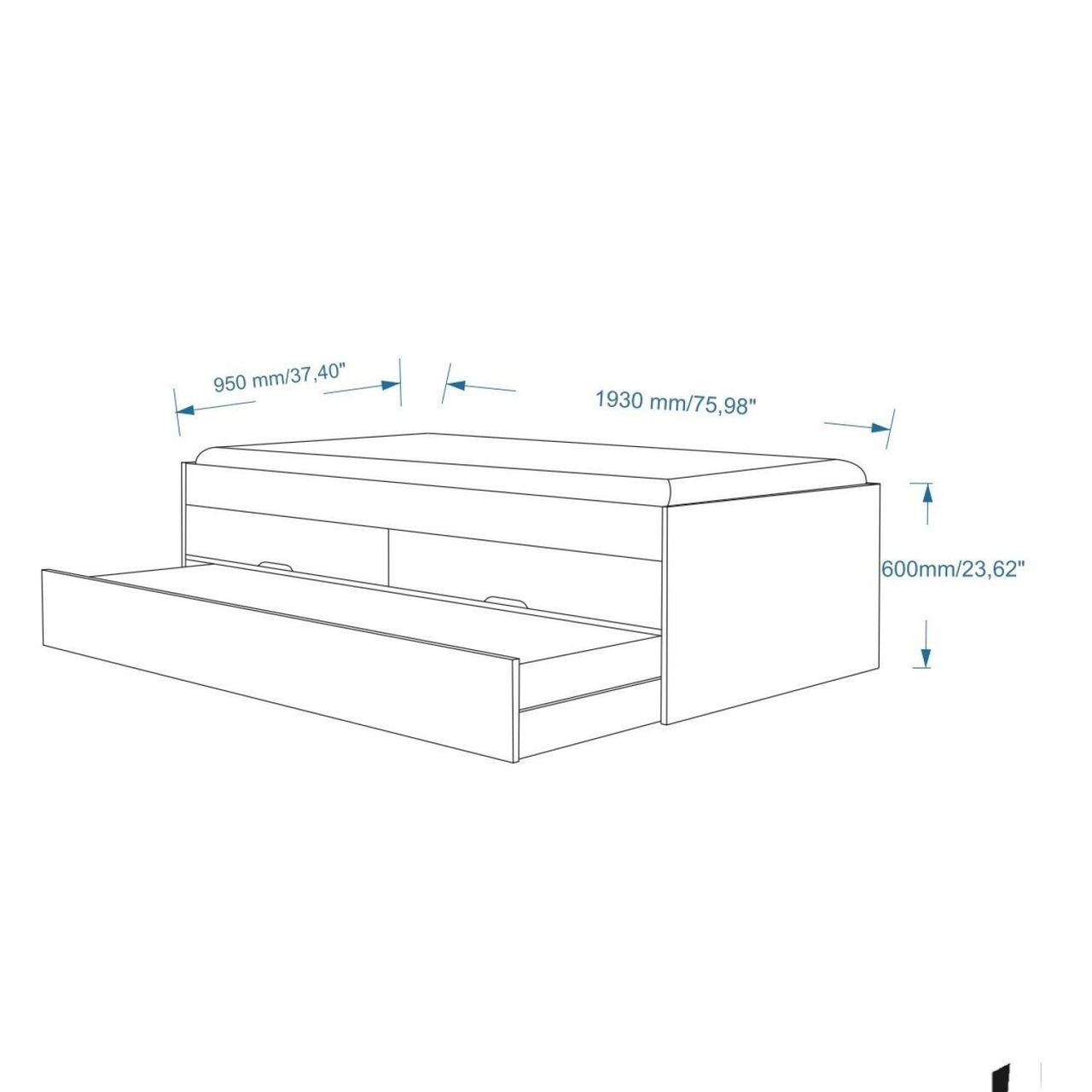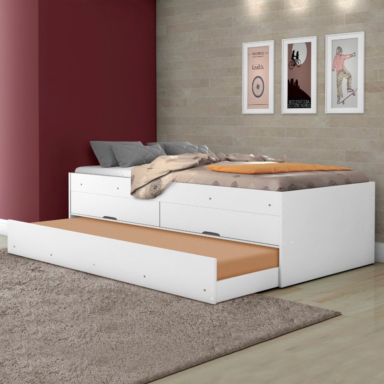 Produto Em Mdf/mdp – Pintura Semi Brilho – Utilizar Pano Seco Para Limpeza. . Possui 2 Gavetas, Peso Suportado, 5 Kg Cada. Cama Auxiliar Utilizar Colchão Com Altura Máxima De 14 Cm – Peso Suportado 100kg