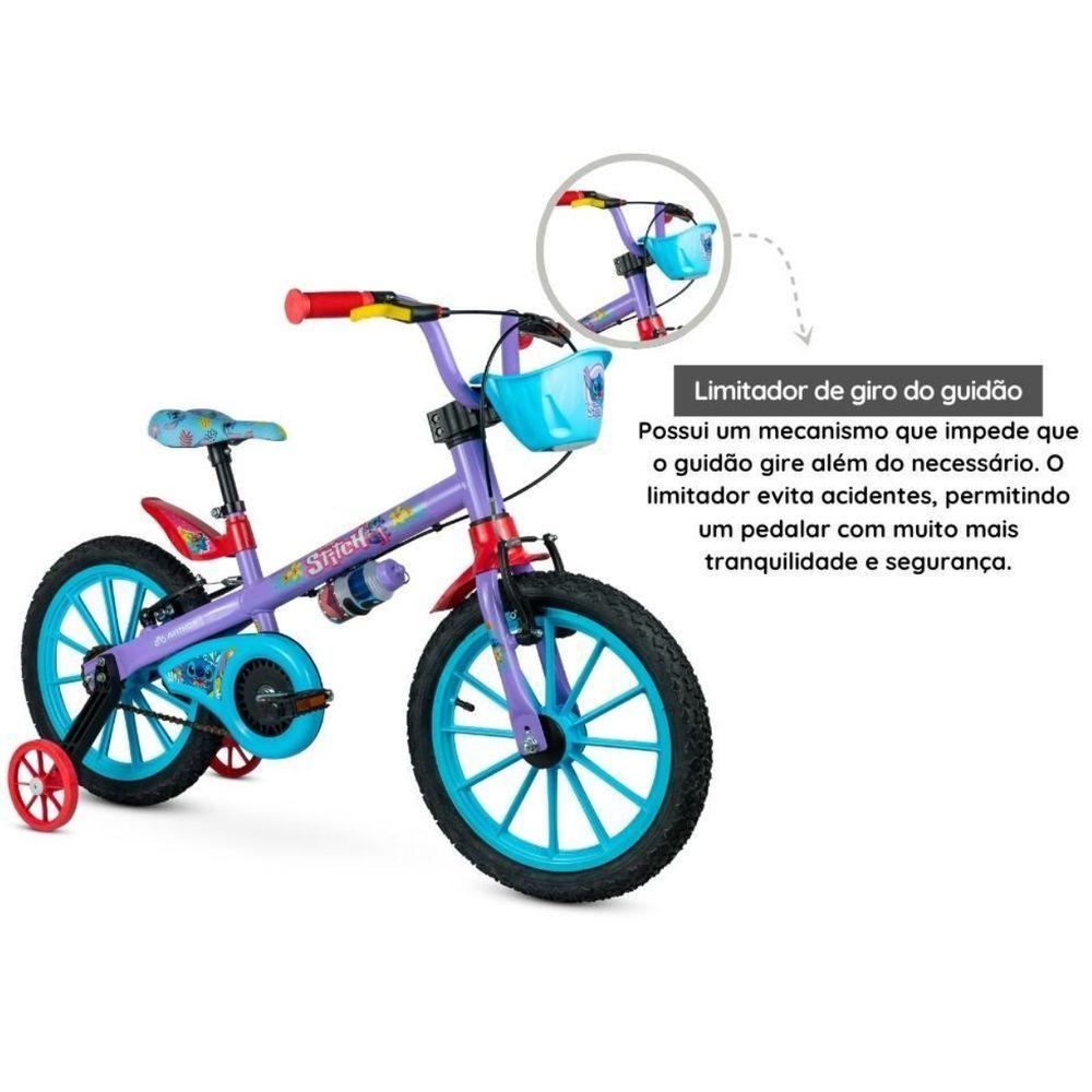 Bicicleta Infantil Nathor Aro 16 Com Rodinhas Stitch 2bicicleta Infantil Nathor Aro 16 Com Rodinhas Stitch 2diversão E Aventura Com Conforto E Segurança A Bicicleta Aro 16 Possui Modelos Com Aro Em Abs E Em Alumínio.o Limitador De Giro Evita Que O Guidão Vire Completamente, Proporcionando Mais Segurança E Preservando O Freio. Para Facilitar O Aprendizado E A Identificação Do Freio Traseiro, A Maçaneta Amarela Ganha Destaque E Indica O Acionamento Ideal Na Hora Da Frenagem.as Rodinhas Laterais Permitem O Desenvolvimento Da Criança Na Fase De Aprendizado, Estimulando O Equilíbrio E A Autonomia.a Aro 16 Tem Pneus Com Câmara, Quadro Em Aço Carbono E Garrafinha.atenção: Devido À Variação De Modelos De Monitores, As Cores Podem Variar Com A Cor Real Do Produto.características Técnicas:aro: 16modelo: Stitch 2cor Predominante: Lilás E Azul Clarofaixa Etária Recomendada: A Partir Dos 5 Anosaltura Máxima Recomendada: 1,10 M A 1,20 Mpeso Máximo Recomendado: 30 Kgquadro, Garfo E Guidão Em Aço Carbonolimitador De Giro Do Guidãofreios V-brake Com Maçanetas Em Nylon Reforçado E Ajustemesa Headset Com Regulagem De Ângulo Do Guidãorodinhas Lateraisaro Em Alumínio Ou Aro Em Abspara-lamas Em Absmovimento De Direção Com Esferasarruela Com Trava De Segurançapneus Com Câmaraabraçadeira Do Selim Em Alumíniogarrafinharegistro Inmetro - Ce-bi/innac 00407-01a Nm 301/2004diferenciais:cor Da Maçaneta Do Freio: Durante A Infância, A Maioria Das Crianças Não Tem Facilidade Em Diferenciar Direita E Esquerda, Mas Tem A Atenção Muito Disposta Em Relação A Cores.para Tornar O Acionamento Do Freio Traseiro Mais Intuitivo E Garantir Ainda Mais Segurança, Decidimos Diferenciar A Maçaneta Direita Com A Cor Amarela.limitador De Giro Do Guidão: A Bicicleta Aro 16 Possui Um Mecanismo Que Impede Que O Guidão Gire Além Do Necessário.o Limitador Evita Acidentes, Permitindo Um Pedalar Com Muito Mais Tranquilidade E Segurança.mesa Do Guidão Com Regulagem: A Aro 16 Possui Guidão Ajustável, Conforme A Criança Vai Crescendo, Você Pode Regular O Guidão Permitindo Que A Postura Se Mantenha Adequada.medidas Do Produto:peso: 9,5 Kgaltura: 69 Cmlargura: 53,5 Cmcomprimento: 107 Cmmedidas Da Embalagem:peso: 10,6 Kgaltura: 48 Cmlargura: 24 Cmcomprimento: 97 Cm7898322524662