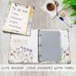- 【tamanho Mini A5】fichário Fofo Com 3 Anéis Para Folhas De 13 Cm X 21 Cm, Com Dois Bolsos Internos Para Guardar Cartas, Adesivos, Fotos E Aniversário, Formatura, Cartões De Natal, Também Com Suporte Para Caneta, Alça Elástica, Proteção De Canto De Metal. Divisor De Fichário Com 5 Guias, Ideal Para Pessoas Que Desejam Criar Suas Próprias Ferramentas Organizacionais, Incluindo Listas E Calendários Que Podem Ser Facilmente Substituídos E Transportados Em Uma Bolsa De Tamanho Normal.