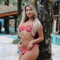 Biquíni Com Estampa Fofa, calcinha Fio Dental Sutiã com Bojo alça Removível. . Calcinha De Amarrar na lateral. . Sutiã. 88% POLIESTER. 12% ELASTANO. . Calcinha. 88% POLIESTER. 12% ELASTANO. . Tamanhos P - 38. M - 40. G - 42