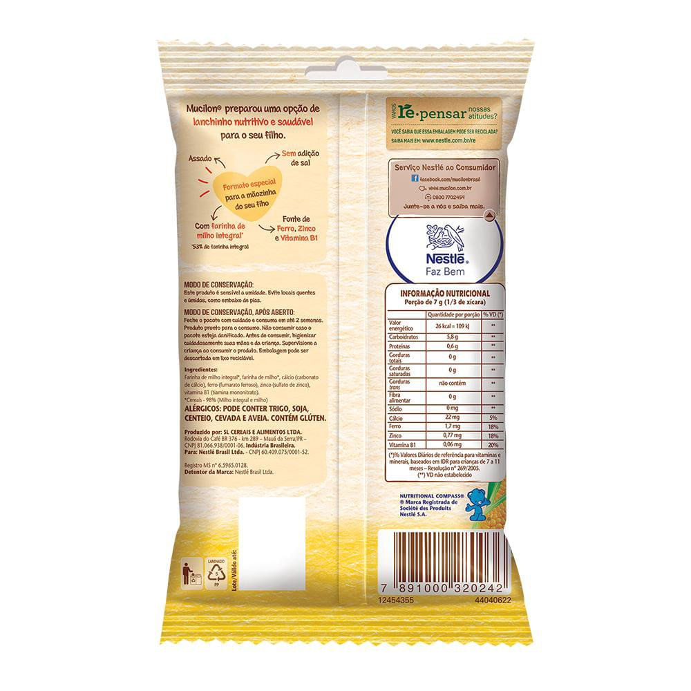 Biscoito Mucilon Snack Milho 35g É Na Drogaria Araujo! Feito Com Farinha De Milho Integral E Vegetais Desidratados, Sem Adição De Sal E É Fonte De Ferro, Zinco E Vitamina B1. Aproveite!