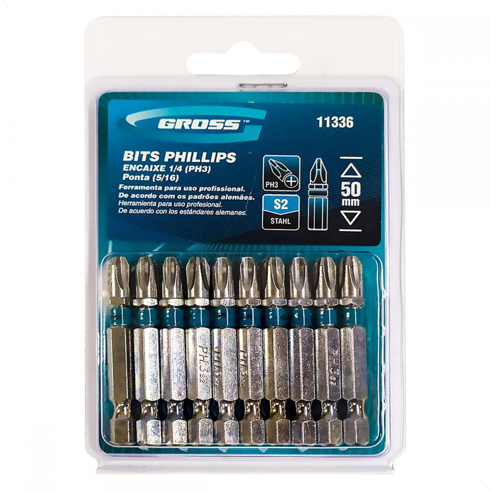 Bits Phillips, Encaixe 1/4 Pol., Comprimento 90 Mm, Ponta 1/4 Pol. Ph2, Aco S2, 10 Pcs//gross