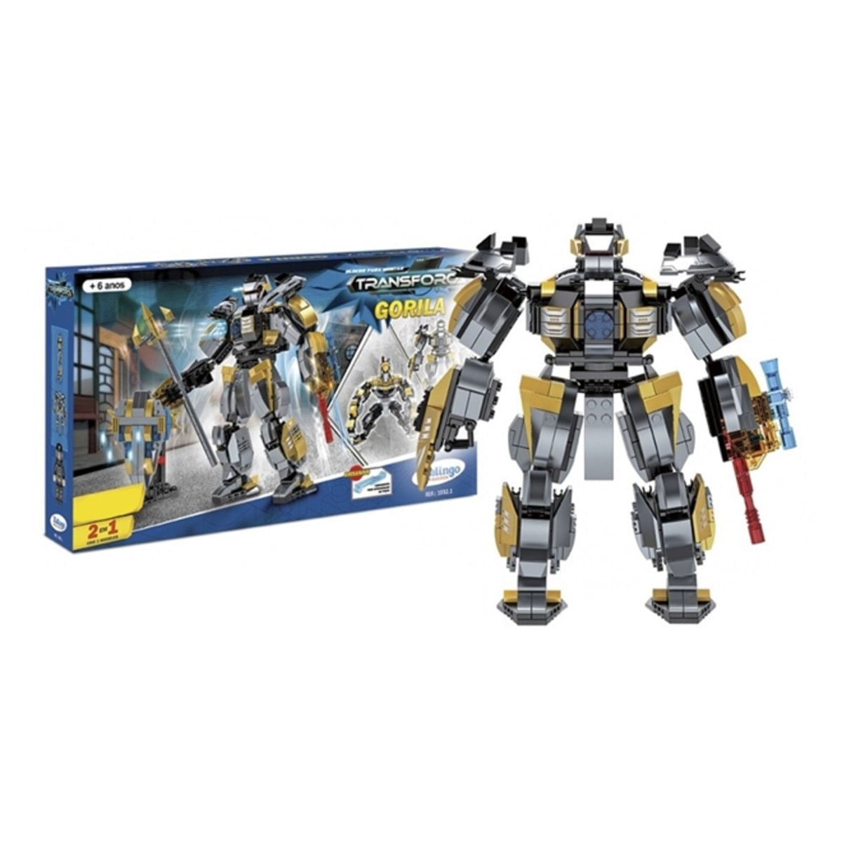 O momento é para ação e muita diversão. O contra-ataque dos robôs já está preparado. Além de robô os blocos de montar podem se transformar em um Gorila. O brinquedo 2 em 1 acompanha 643 peças que possibilitam a montagem de 2 diferentes modelos. Desenvolve a coordenação motora e habilidades de diferenciação das partes e do todo. ..Tipo: Transforça Gorila.Idade recomendada: A partir de 6 anos.Quantidade de peças: 643.Material: Plástico.Selo de homologação: INNAC WOMA..Marca: Xalingo.Conteúdo da embalagem: Blocos para montar.Dimensões aproximadas do produto: 55 x 9 x 31 cm (A x L x C).Dimensões aproximadas da embalagem: 31 x 9 x 55 cm (A x L x C).Peso aproximado da embalagem: 2,3 Kg.Informações Adicionais: Acompanha Manual..Recomendação: Desenvolve a coordenação motora fina, percepção visual e proporciona momentos lúdicos enquanto ensina. ..Produtos de decoração não inclusos. Imagens meramente ilustrativas. ..As cores dos objetos podem sofrer alterações devido a luminosidade, configurações do monitor e até mesmo a percepção do usuário...