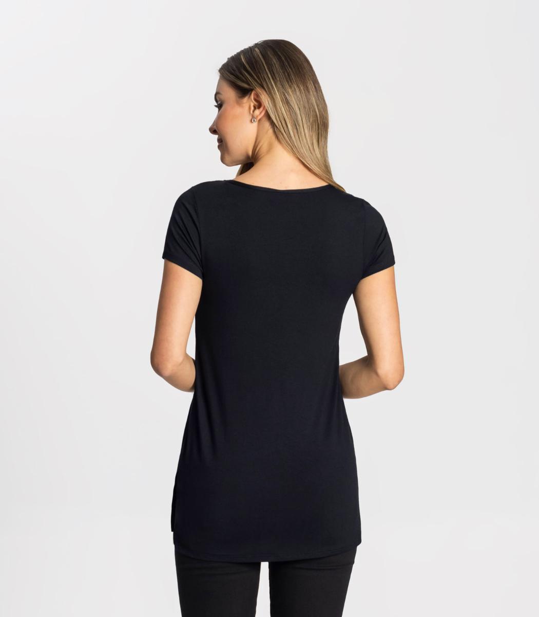 Blusa alongada Rovitex Básicos desenvolvida na malha viscotorcion com detalhe de abertura nas laterais. Os básicos são itens essenciais no guarda-roupa, vão bem para qualquer ocasião, aposte!