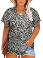 - A Blusa De Chiffon Plus Size Apresenta Gola V, Mangas Curtas, Design Floral Estampado, Estilo Boho, Camisa Feminina Plus Size, Tops Grandes Para Trabalho E Negócios Para Mulheres.