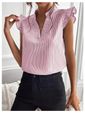 - Características: Manga Cavada Listrada, Gola V, Babados, Manga Cavada, Manga Borboleta