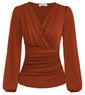 - Característica Exclusiva: As Blusas Franzidas Modernas Para Mulheres Com Um Ajuste Rente, Mas Confortável, Com Fácil Movimento Com Decote Em V, Frente Franzida, Mangas Compridas, Caimento Justo, Cor Sólida, Blusas Elegantes Mostram Suas Curvas Graciosas Em Qualquer Ocasião.