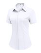 - Design Inovador: Esta Blusa Feminina De Botão De Manga Curta Apresenta Um Design Clássico De Gola, Simples E Elegante. A Alfaiataria Modeladora Naturalmente Abraça O Corpo, Mostrando As Curvas Femininas, E Vem Em Uma Variedade De Cores Para Escolher