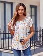 - Características: Blusas Femininas Elegantes Casuais, Camisetas Femininas Folgadas, Design Adorável Plissado Frontal, Blusas De Manga Curta De Gola Redonda Com Bainha Curva, Blusa De Trabalho De Negócios, Blusas Florais, Blusa Túnica Boêmia.