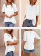 - Características: Blusa Texturizada De Manga Curta Para Mulheres É De Cor Lisa Com Manga Curta Meia Balão, Gola Redonda, Camisetas Básicas Para Mulheres, Camisetas Elegantes Casuais Para Mulheres, Blusas De Verão Para Mulheres 2025