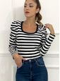 - 【características】blusa Feminina De Manga Comprida Bufante, Top De Malha Canelada, Blusa Clássica De Gola Quadrada, Listras Horizontais Clássicas, Camisas De Manga Comprida Para Mulheres, Caimento Justo, É Uma Ótima Blusa Básica Moderna Para O Seu Guarda-roupa.