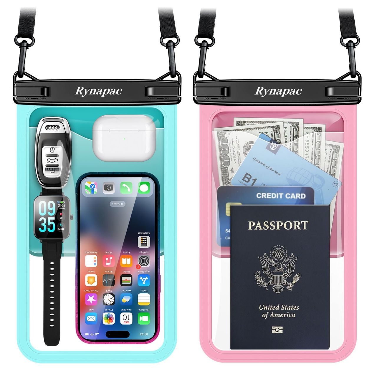 - 【itens Essenciais Para Viagens Na Praia】- A Bolsa Protetora Para Telefone Aquático Rynapac Com Cordão Resistente É A Companhia Perfeita Para Uma Ampla Variedade De Atividades Na Praia. Se Você Estiver Relaxando Na Praia, Brincando Surfando Ou Simplesmente Tomando Sol, Este Item Essencial De Praia Para Férias Mantém Seu Telefone E Pertences Protegidos E Acessíveis. Esta Capa De Telefone À Prova D'água Também É Ótima Para Aventuras Em Parques Aquáticos, Viagens No Havaí, Férias Cancunidas, Natação, Passeios De Barco, Caiaque, Mergulho E Muito Mais