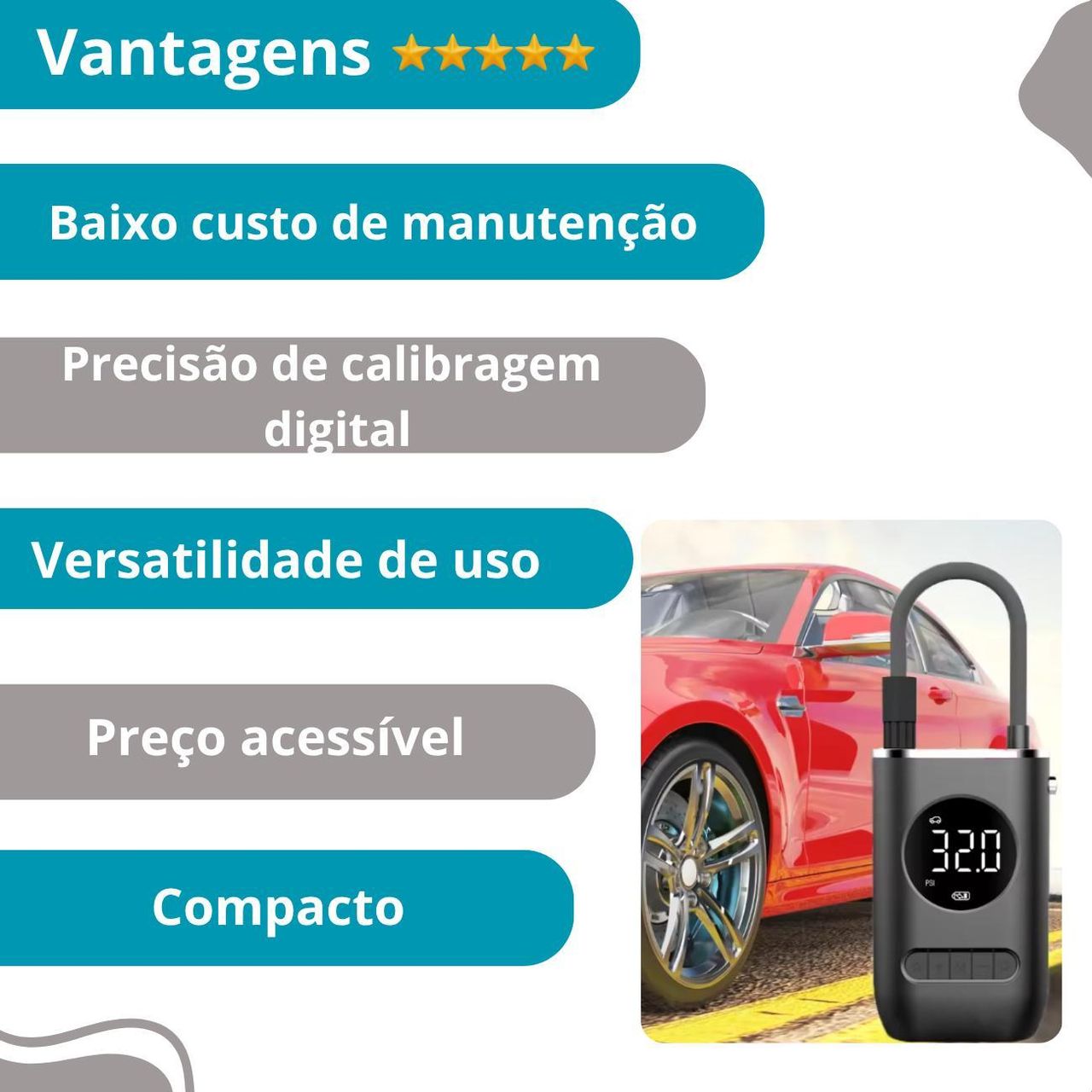 Tenha Sempre À Mão O Compressor De Ar Portátil Digital, Indispensável Para Inflar Pneus De Carros, Motos, Bicicletas, E Até Bolas. Compacto E Potente, Com Função Recarregável E Lanterna Integrada Para Emergências.