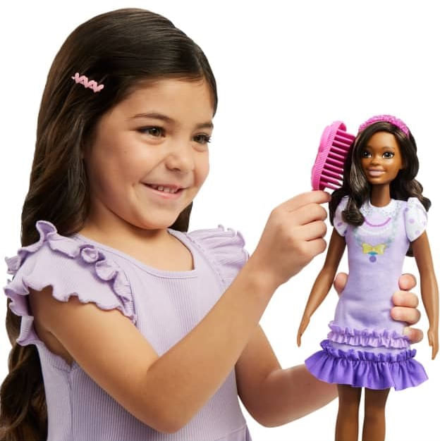 além Disso, A Barbie My First É Feita Com Materiais De Alta Qualidade E Seguros Para As Crianças, Garantindo Que A Diversão Seja Sempre Segura E Saudável. Seu Vestido Na Cor Lilás E Tiara Combinam Perfeitamente Com Sua Pele Morena E Castanho Escuro Brilhante, Dando A Ela Um Visual Encantador E Atraente.