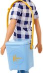 - Vestido Com Seu Visual Exclusivo De Acampamento, O Boneco Ken Usa Uma Camisa Xadrez Com “botões”, Jeans Desgastados E Tênis Brancos Casuais.