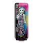 A Boneca Frankie Stein está à espreita de uma forma espantosa! Esta aprendiz do Monster High™ está arrasando com uma roupa de uivar, com uma bolsa exclusiva e acessórios elegantes. Ela está pronta para fazer uma pose estilosa a qualquer momento, em qualquer lugar, com 11 articulações flexíveis – totalmente articulada. A boneca não fica em pé sozinha. As cores e as decorações podem variar.