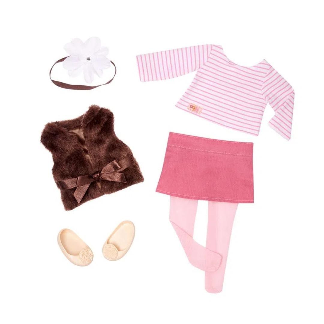 Sienna Está Pronta Para Embarcar Em Um Dia Muito Divertido Ela Ama Moda, Principalmente O Seu Coletinho Fofo Em Pele Sintetica. Adora Ir Ao Shopping Com A Sua Mãe E Amigos Para Ver Qual É A Próxima Grande Tendência E O Que É Elegante Seu Cabelo É Sedoso, Macio E Fácil De Pentear. Ela Tem Cabelos Castanhos Compridos E Lisos E Lindos Olhos Castanhos. Vestida Com Uma Camiseta Listrada, Colete Quentinho, Saia De Veludo Rosa, Meia Calça E Sapatos. Suas Roupas Tem Fechos Fáceis De Abrir O Que As Tornam Rápidas E Fáceis De Colocar E Remover.