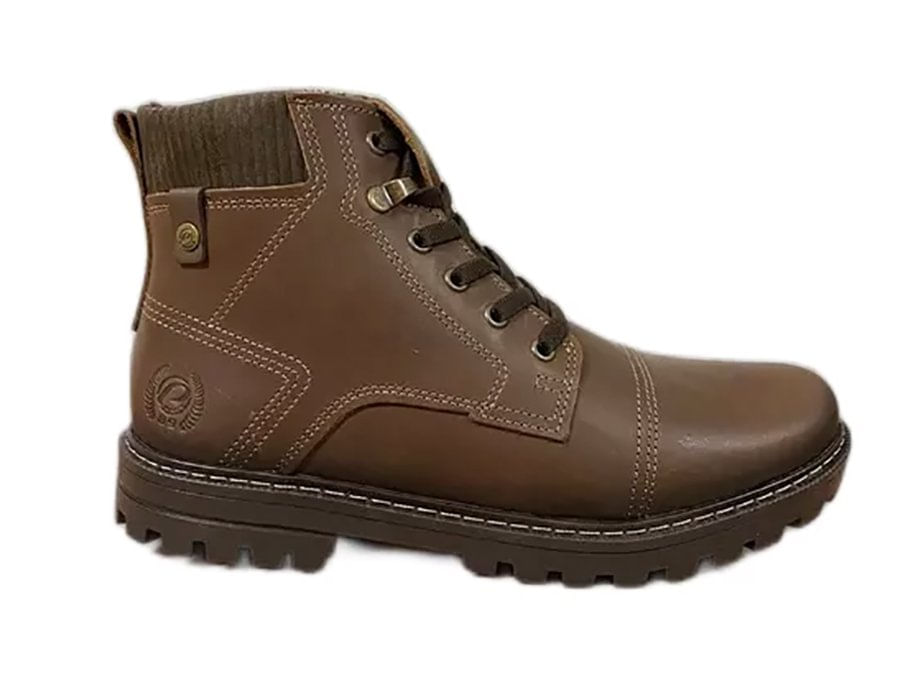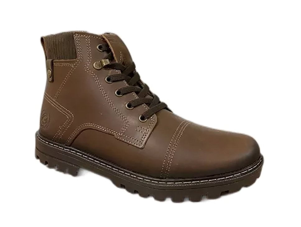 Pegada Coturno 181554\nessa Bota Em Couro Marrom Da Linha Jungle É Robusta E Muito Confortável. O Forro Em Tecido Espumado Garante O Conforto E A Absorção De Suor, Características Necessárias Para Manter O Pé Seco E Arejado. O Solado É Tratorado, Antiderrapante E De Alta Flexibilidade, Oferecendo A Segurança E A Versatilidade Ideal Ao Calçado Do Dia A Dia. Já A Palmilha É Feita Em Material Macio E Confortável. É Perfeita Para Quem Procura Por Estilo Sem Abrir Mão Do Conforto.\nlinha: 181554 Jungle\nmaterial/acabamento: Couro Pull Up\nfechamento: Com Cadarço\ntipo De Bico: Redondo
