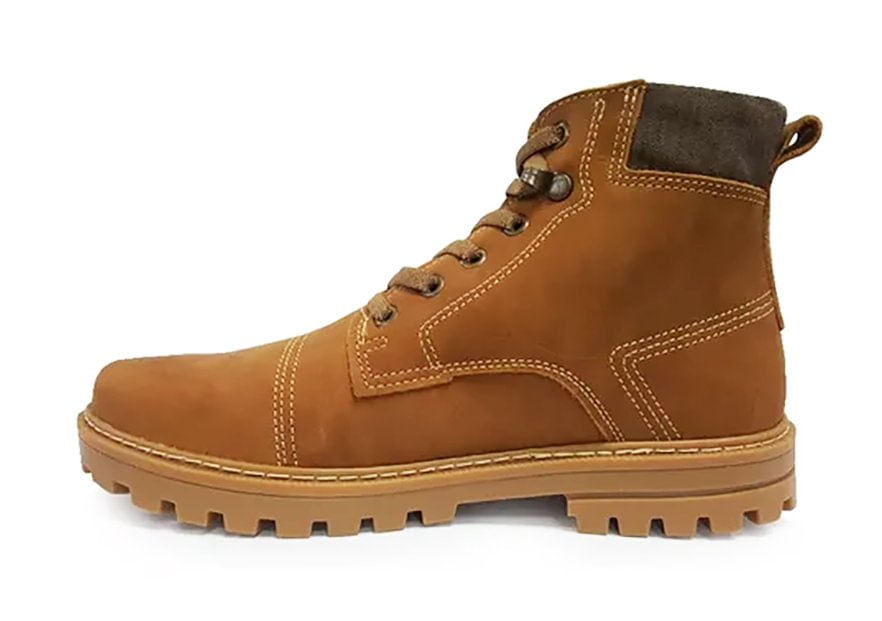 Pegada Coturno 181554\nessa Bota Em Couro Marrom Da Linha Jungle É Robusta E Muito Confortável. O Forro Em Tecido Espumado Garante O Conforto E A Absorção De Suor, Características Necessárias Para Manter O Pé Seco E Arejado. O Solado É Tratorado, Antiderrapante E De Alta Flexibilidade, Oferecendo A Segurança E A Versatilidade Ideal Ao Calçado Do Dia A Dia. Já A Palmilha É Feita Em Material Macio E Confortável. É Perfeita Para Quem Procura Por Estilo Sem Abrir Mão Do Conforto.\nlinha: 181554 Jungle\nmaterial/acabamento: Couro Pull Up\nfechamento: Com Cadarço\ntipo De Bico: Redondo