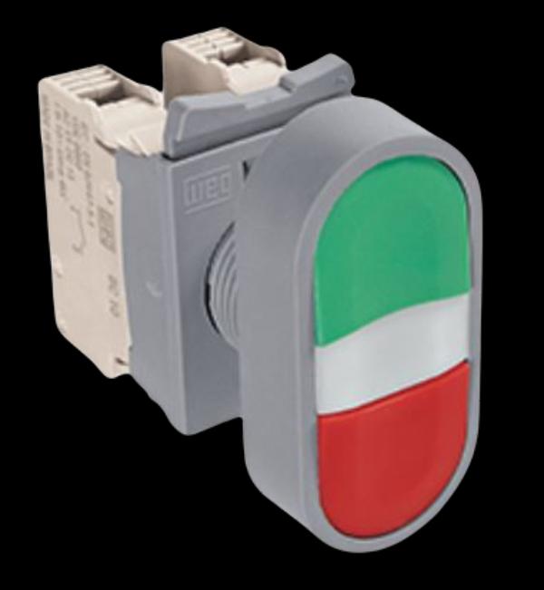 Botão Comando Duplo - CEW - WEG Único - Ref.: 871019.. BOTÃO COMANDO DUPLO..MODELO: CEW - IP52..CARACTERÍSTICAS..Projetada em conformidade com a norma IEC 60947-5-1, a linha de Comando e Sinalização CEW foi desenvolvida para aplicações gerais nos ambientes industriais. É uma linha modular que apresenta um sistema de montagem rápida e fácil com apenas um clique, dispensando a utilização de ferramentas...A montagem dos blocos auxiliares é feita de forma sobreposta entre si, o que permite um maior número de circuitos e redução de espaço no painel elétrico. Os blocos auxiliares da linha, também são autolimpantes, garantindo melhor condutividade elétrica ao circuito mesmo em aplicações de baixo consumo de energia...Características Gerais do Produto:.. Categoria de Segurança: IP 52. Dimensões (mm) / Peso (g): 50 (A) x 35 (L) x 35 (C) / Aproximadamente 25g..Acompanha o produto:.. 1 Botão de Comando Duplo..Garantia:.. 3 meses com a loja