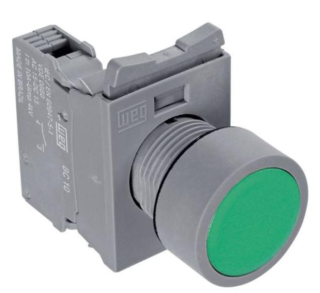 Botão de Comando Simples CEW - WEG Preto - Botão de Comando Simples CEW - WEG.. BOTÃO DE COMANDO SIMPLES ..MODELO: CEW..CARACTERÍSTICAS..Botões Pulsadores - Não Iluminados - (Ø22 mm) - IP54..Fornecimento: Somente Frontal..Os botões da linha de Comando e Sinalização CEW foram desenvolvidos para utilização em aplicações industriais...Projetada em conformidade com a norma IEC 60947-5-1, a linha de Comando e Sinalização CEW foi desenvolvida para aplicações gerais nos ambientes industriais. É uma linha modular que apresenta um sistema de montagem rápida e fácil com apenas um clique, dispensando a utilização de ferramentas...A montagem dos blocos auxiliares é feita de forma sobreposta entre si, o que permite um maior número de circuitos e redução de espaço no painel elétrico. Os blocos auxiliares da linha, também são autolimpantes, garantindo melhor condutividade elétrica ao circuito mesmo em aplicações de baixo consumo de energia...Principais Características..Linha totalmente modular.Desenvolvida para instalações de Ø 22,5 mm.Alta tecnologia em injeção de materiais plásticos e mecânica de precisão.Sistema de montagem rápida e fácil.Grau de proteção IP54 e IP52 (CEW-BDM)..Características Gerais do Produto:.. Cor: Branco, Preto, Amarelo, Vermelho, Verde, Azul. Aplicação: Comando e sinalização CEW. Dimensões (mm) / Peso (g): 25 (A) x 25 (L) x 30 (C) / Aproximadamente 20 gr..Acompanha o produto:.. 1 Botão de Comando Simples..Garantia:.. 3 meses com a loja