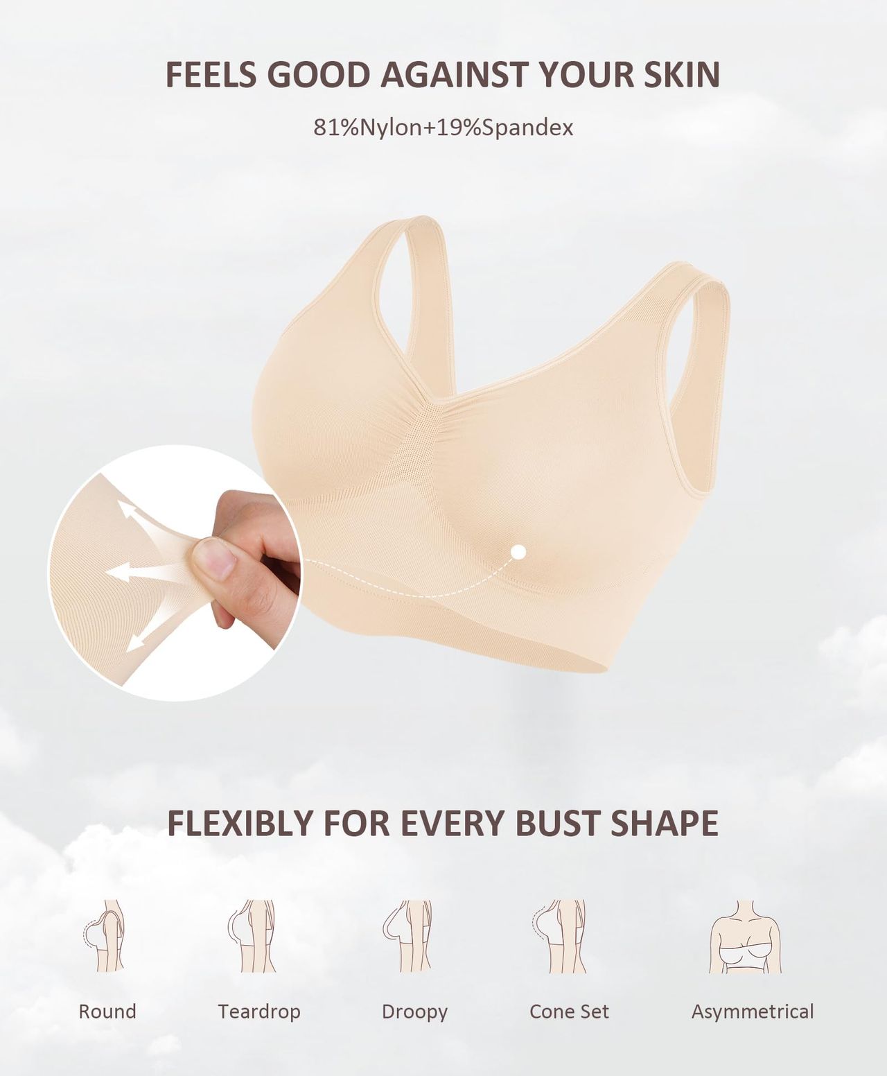 - Sutiã Sem Costura E Sem Aro: Nossos Sutiãs Feelingirl São Feitos De 81% Nylon E 19% Elastano, Oferecendo Um Toque Macio Com Excelente Elasticidade. Cada Centímetro Do Tecido Pode Se Adaptar Suavemente Às Curvas Do Busto, Como Uma Segunda Pele. Não Causará Nenhum Atrito Ou Desconforto E Dá A Você Uma Sensação Completamente Desenfreada, Proporcionando O Cuidado Mais Atencioso E Confortável Para Seus Seios.