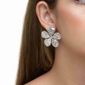 01 Par De Brinco Flor Orgânico Folheado A Prata Semijoia Lizzy Fatin.