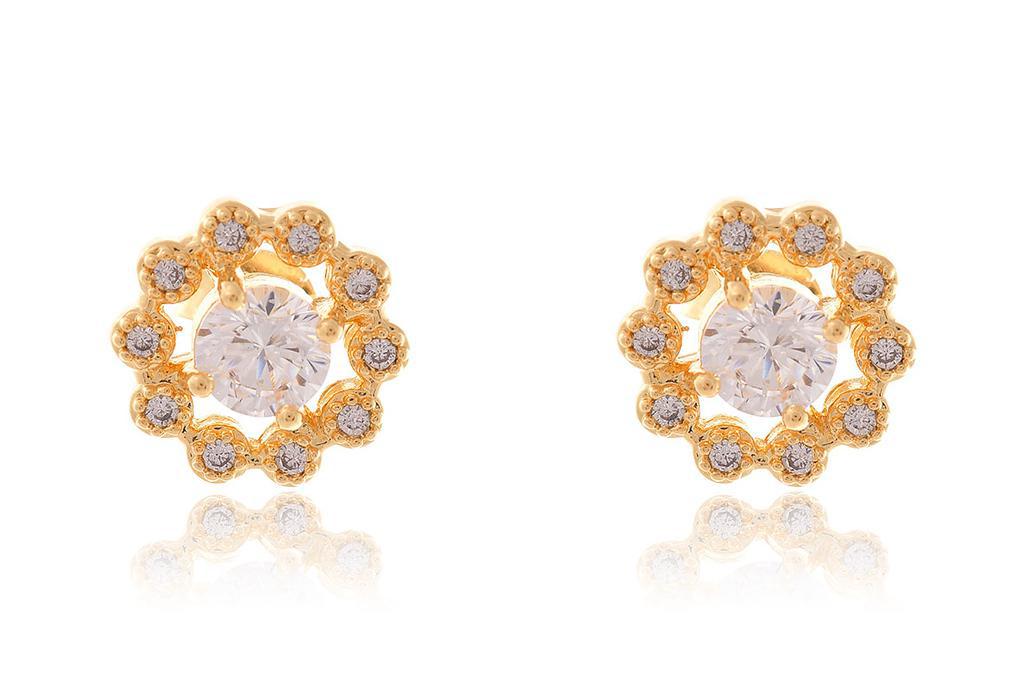 O Brinco Formato Flor Com Mini Zircônias É Lindíssima E Perfeita Para Você Combinar Com Um Magnifico Colar Com Ponto De Luz Em Zircônia A Maravilhosa Peça Transmite Um Olhar Moderno E Singular Que Contrasta Muito Bem Com O Banho Em Ouro 18k, Assim, Tornando O Brinco Essencial Para Compor Seu Look Perfeito Tem Que Ter Né. Esse Acessório É Antialérgico