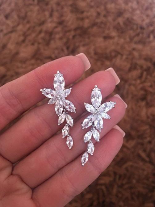 Brinco Banhado A Ouro Branco Com Pedras De Zircônia. 3,8 Cm De Comprimento. 1,6 Cm De Largura. Ideal Para Noivas, Madrinhas, Debutantes, Formaturas E Festas Em Geral. Acompanha Caixinha De Presente. Simplesmente Lindo