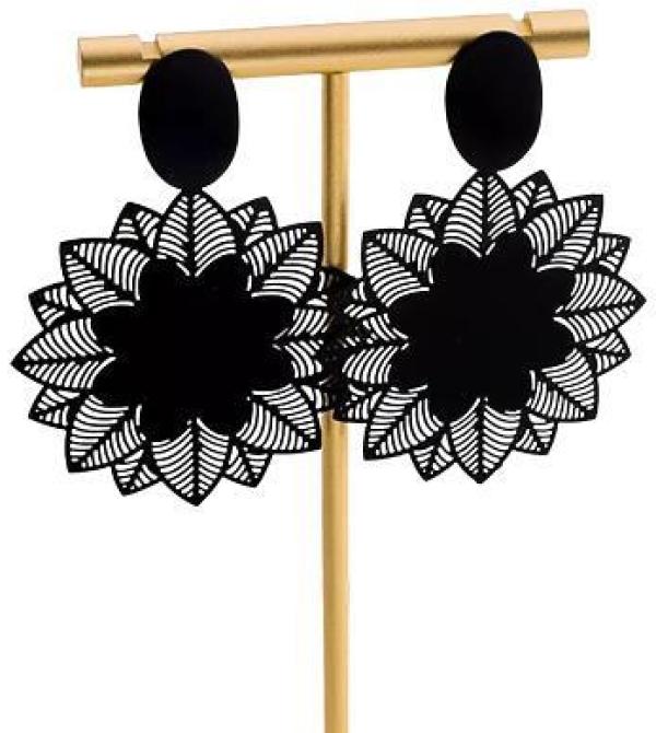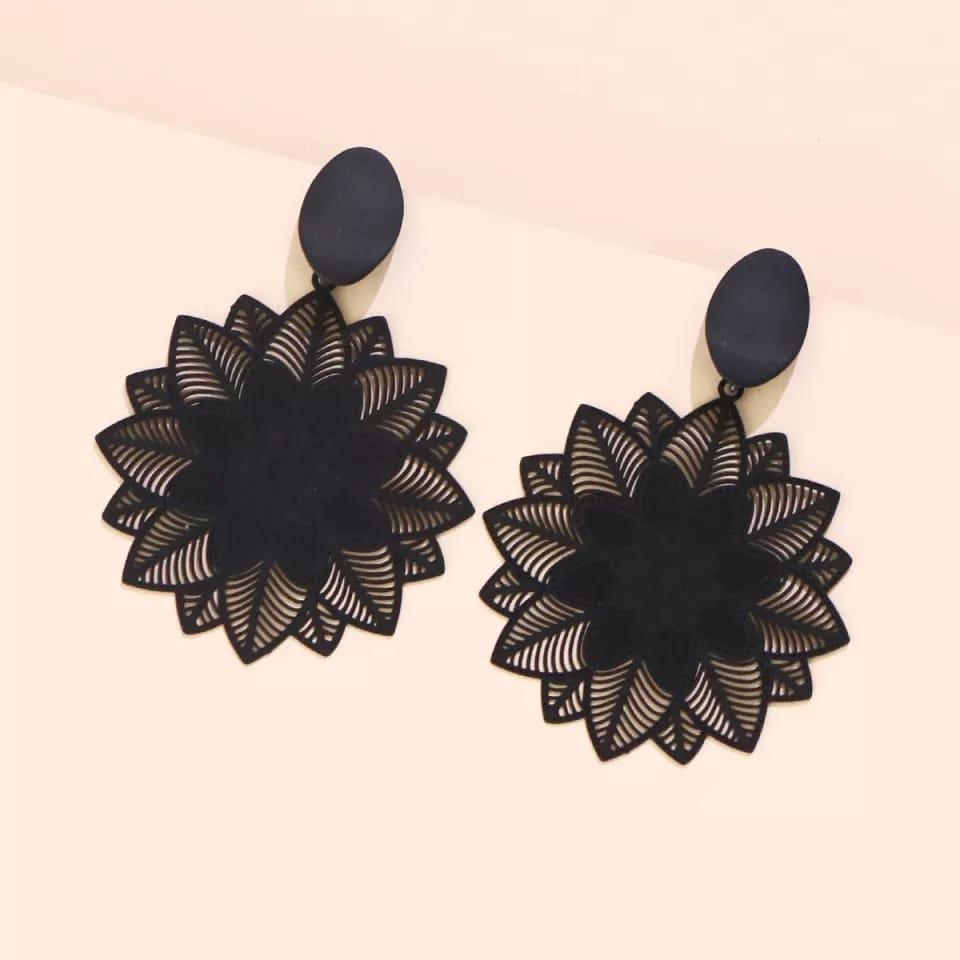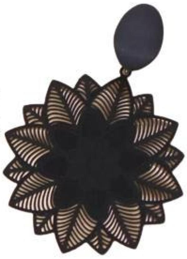 Lindo Par De Brincos Em Formato De Circulo Com Flores Em Renda Na Cor Preto, Formato Semelhante Uma Mandala, Perfeito Para Qualquer Ocasião, Com A Elegância Da Beleza Feminina.