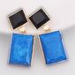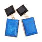 Lindo Par De Brincos, Modelo Geométrico, Com Quadrado E Retangulo, Na Cor Azul Com Dourado, Perfeito Para Qualquer Ocasião, Com A Elegância Da Beleza Feminina.